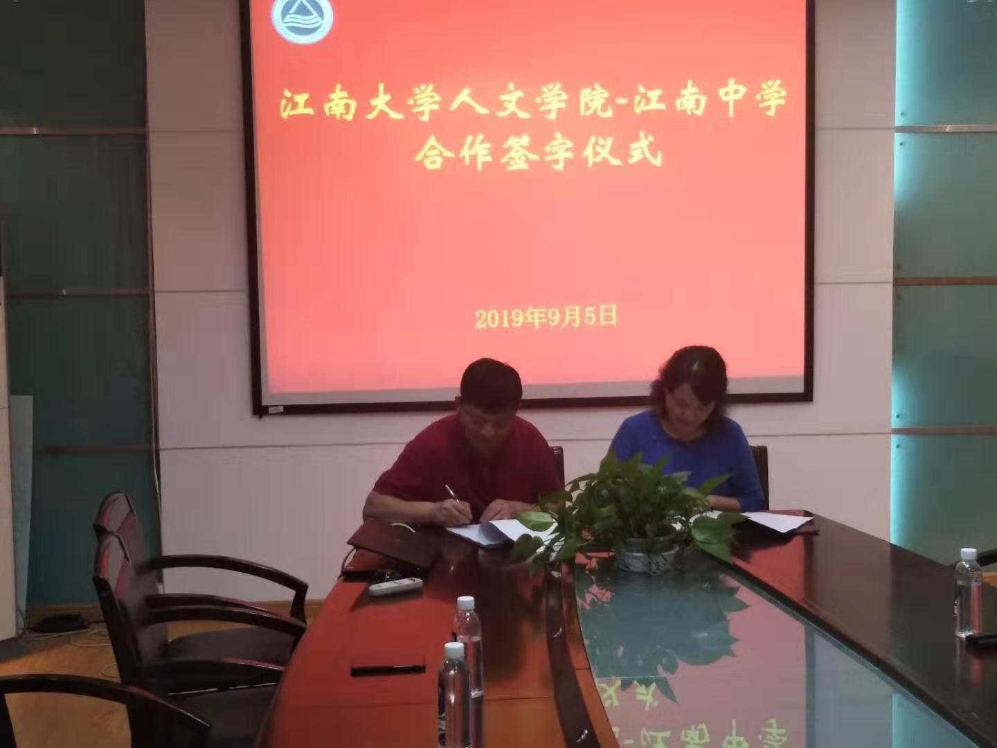 -江南中学合作签字仪式在田家炳楼207会议室举行。江南中学党委书记吴卫红、校长周宏燕、科研处主任陈刚,皇冠国际