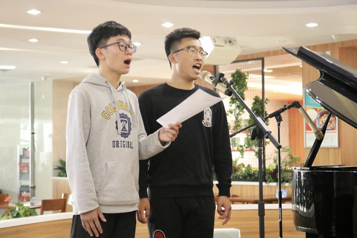 活动开始,由蒋雨柔同学担任钢琴伴奏,伏广帅、项家俊同学担任领唱,全体师生党员和发展对象培训班的学员们共同唱响了《我和我的祖国》。紧接着,饮食中心职工王磊演奏了萨克斯《我爱你,中国》。歌声与曲声传递着师生党员共同的中国情、中国心、中国梦。