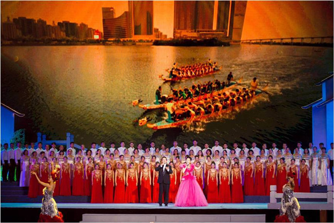 2017年9月19-20日,江南大学合唱团应邀参加了由国台办指导、江苏省台办主办,江苏广电集团承办的“两岸情·一家亲”——两岸交流合作30周年中秋主题晚会,此次演出在昆山市周庄古镇风景区成功举办。国务院台湾事务办公室副主任郑栅洁、江苏省委常委、省委宣传部部长、省委统战部部长王燕文等重要领导和台商代表观看了晚会。