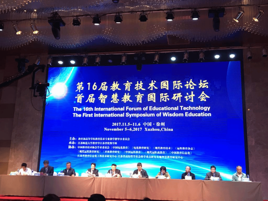 2017年11月4日至6日,第16届教育技术国际论坛(IFET2017)暨首届智慧教育国际研讨会在江苏省徐州市江苏师范大学召开。该会议由教育部高等学校教育技术专业教学指导分委员会主办,由江苏师范大学教育学江苏省优势学科承办,由中国教育技术协会学术委员会及教育技术领域的主要学术期刊协办。来自全国各地的1000余名专家、学者、研究人员等参加了会议。会议的主题为“走向智慧时代的教育创新发展研究”。在大会上,国内外20多位专家做了大会主题报告,有120多场分论坛报告。教育信息化研究中心陈明选教授作为教育部教育技术学教学指导委员会副主任委员在主席台就坐,马志强副教授、王志军副教授、蔡慧英博士以及19名研究生参与了此次会议。
