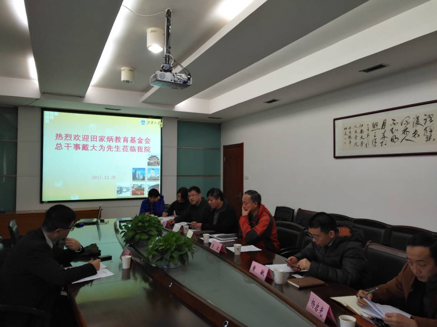 戴大为先生首先介绍了田家炳基金会近年来在内地的发展情况,重点介绍了基金会未来将在德育、中华文化传承、香港与内地学术交流等方面的工作设想。他表示,基金会希望同江南大学开展进一步的交流与合作,共同为中国教育事业的发展贡献力量。