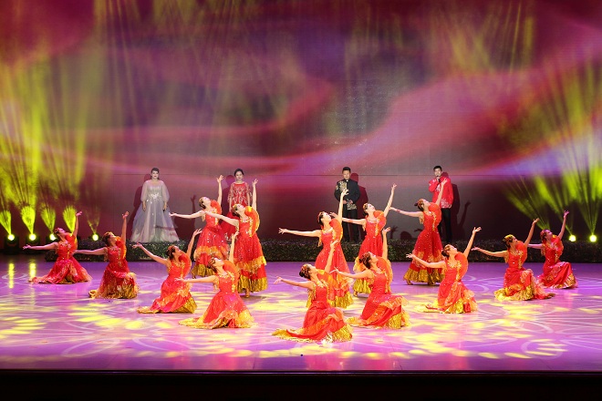 演出以大型歌舞《打开春天》开场,一开场即掀起了积极向上的情绪热潮。王芳老师演唱的歌曲《一路同心》、马克老师演唱的《日月之恋》、钱琳老师更是深情演绎《在那东山顶上》向观众展示了高雅艺术独特的魅力。曾被授予第16届广州亚运会闭幕式“突出贡献奖”的女子群舞《蒙格尼》、由刘俊、符姗姗老师编舞,叶凌飞、刘青指导曾获第八届全国舞蹈“荷花奖”的男子群舞《东林书魂》以及荣获江苏省文化厅第三届“文华奖”多个奖项的舞蹈《雁南飞》等节目,则向观众展示了江南大学舞蹈专业的专业水平和良好声誉。