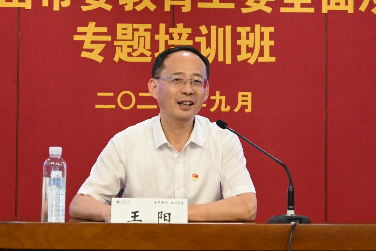 随后,王阳指出本次培训搭建学习交流的优质平台,旨在通过系统培训强化干部队伍综合能力,推动各学校书记、校长进一步深化理论武装,更精准地落实教育管理职责,要以严的基调整治教育领域不正之风与腐败问题、树立终身学习理念以及及时调整工作状态,在培训与实践中勤反思、多沉淀,把学习成果转化为工作实效。
