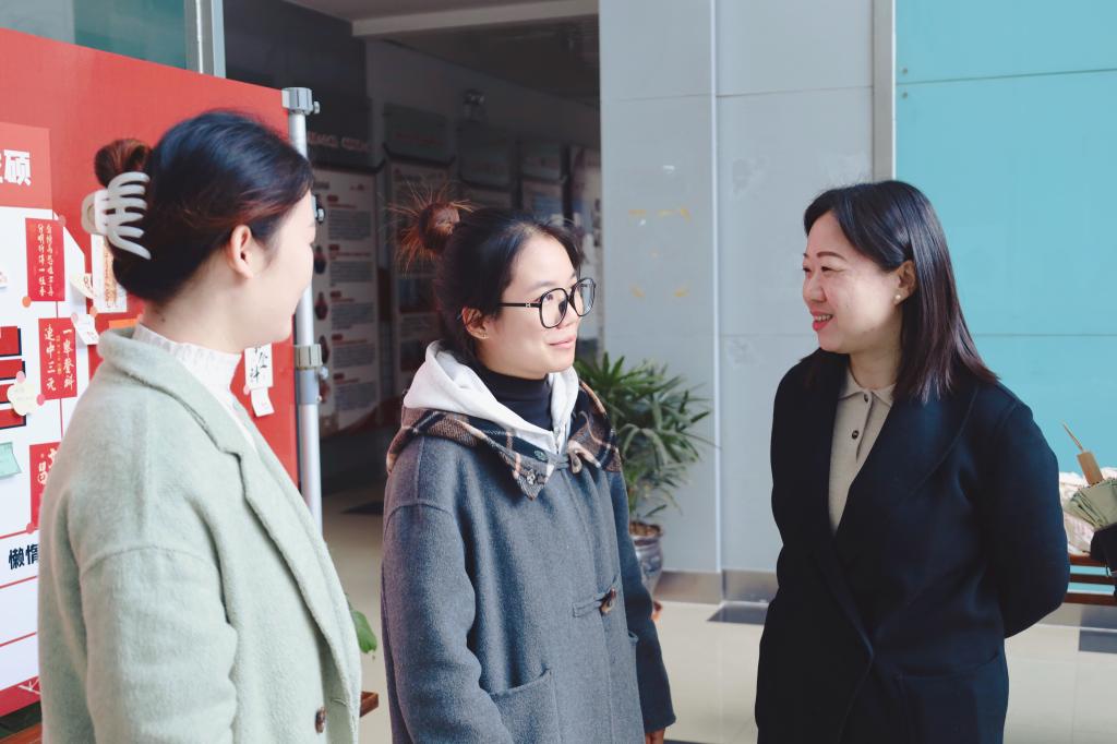 下午,毕业班辅导员谢铅玉、王振彬深入学生宿舍,走访慰问考研学子。他们与同学们面对面交流,分享高效调节心态的秘诀,并鼓励大家相信长期积累的力量,以平和自信的姿态完成最后一程的冲刺。这份走进宿舍的关怀,延续了学院对考研学子一贯的重视与支持,让温暖的祝福覆盖到每一位奋斗的身影。