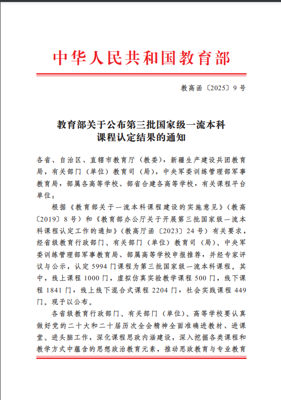 近日,《教育部关于公布第三批国家级一流本科课程认定结果的通知》(教高函〔2025〕9号)正式发布。皇冠国际